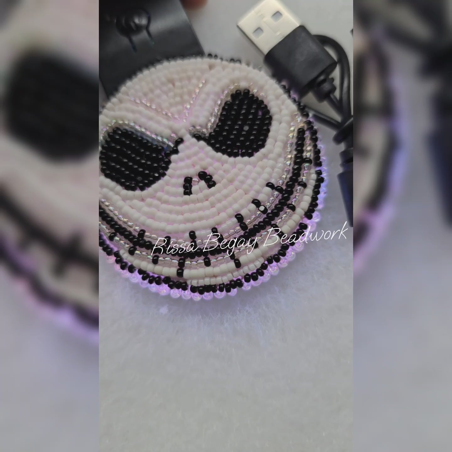 Double sideded beaded rechargeable LED light up keychain NBC w/usb charger